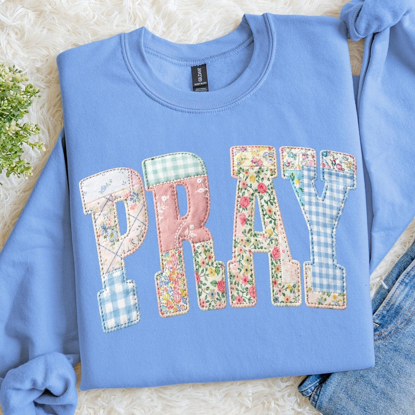 ⭐ BEST SELLER ⭐ FAUX Pray Patchwork Graphic Tee or Pullover - Made to Order