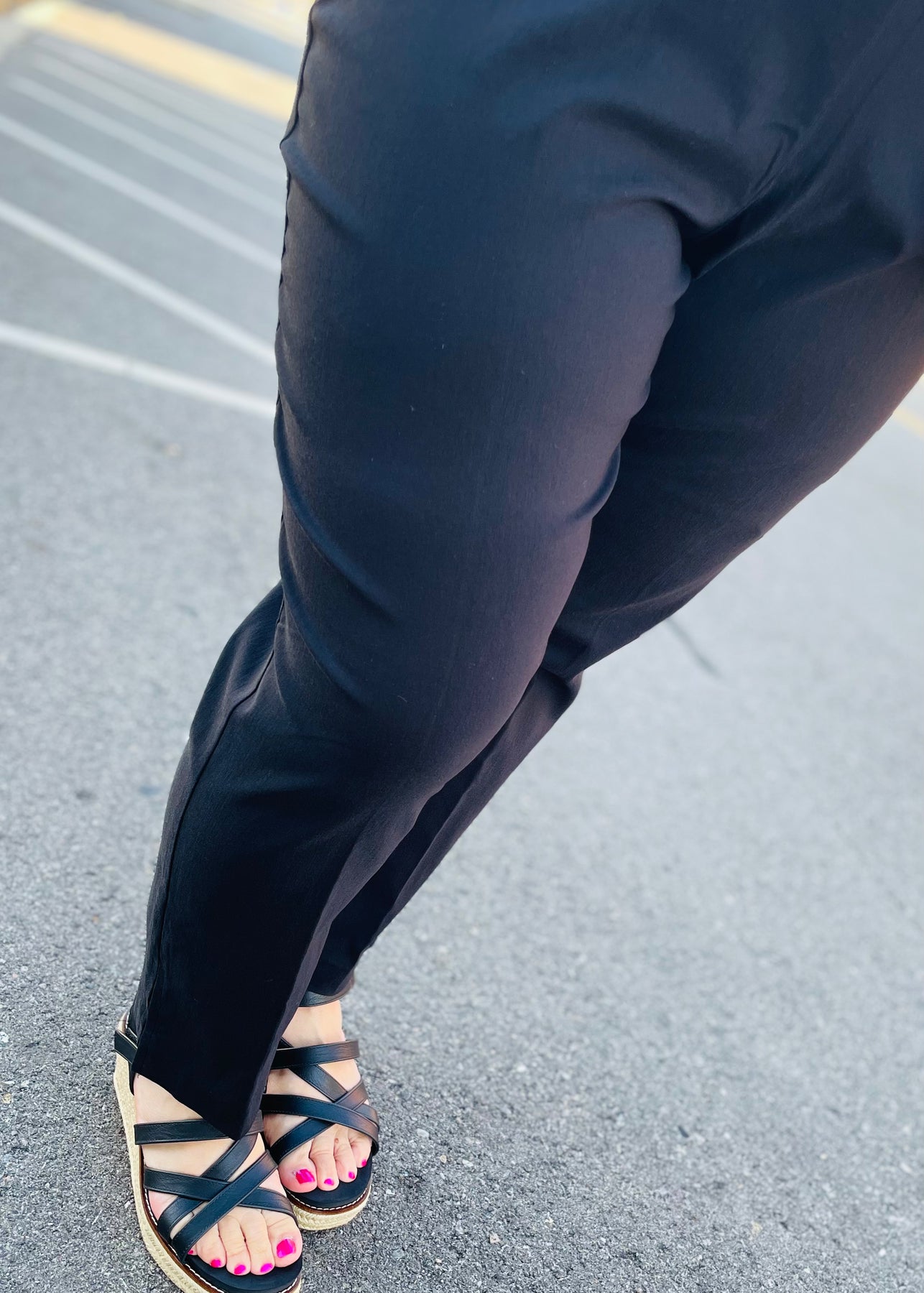 The Black Millennium pants offer a straight leg silhouette with an easy pull-on fit. Versatile enough to pair with a graphic tee for relaxed weekends or a blouse for professional settings, these pants transition seamlessly from office hours to weekend activities. Designed for everyday wear, they are set to become a key piece in your wardrobe.
