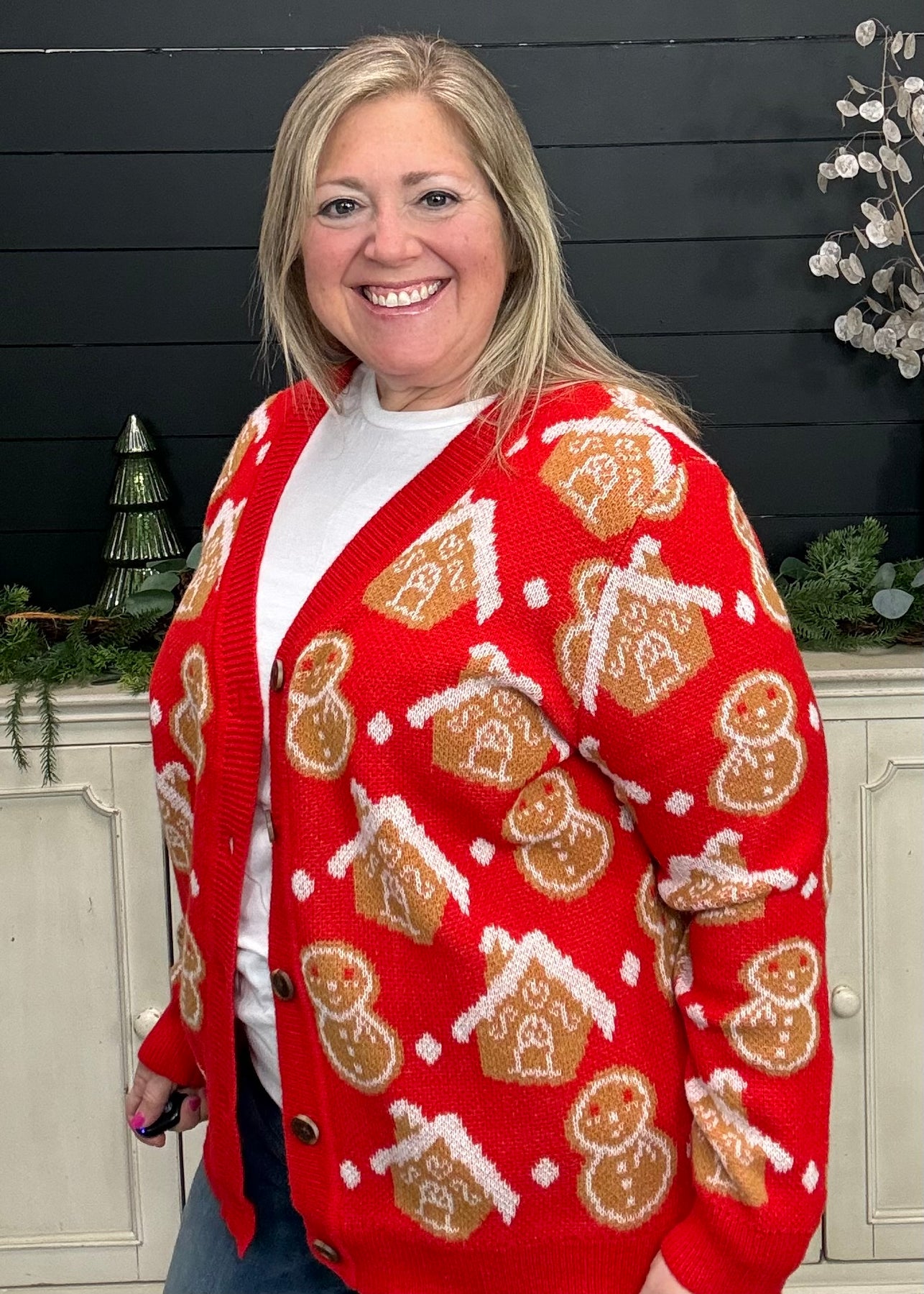 Upgrade your holiday wardrobe with our Gingerbread Lane Cardigan. Expertly crafted from high-quality sweater material, this custom holiday sweater is the perfect addition to any festive celebration. Its unique and stylish design pairs seamlessly with Judy Blue Denim and Corky's footwear, making it a fashionable and versatile choice for the season.