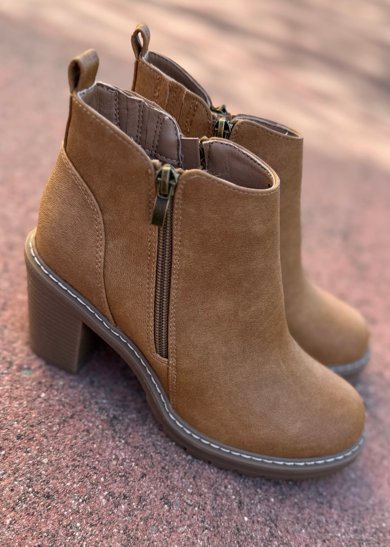 Elevate your daily style with the Rocky Top bootie, featuring a polished black heel with a subtle edgy flair. Crafted with a chunky stacked heel, side zipper, and contrasting stitch details, this boot offers both comfort and sophistication for fall and beyond.