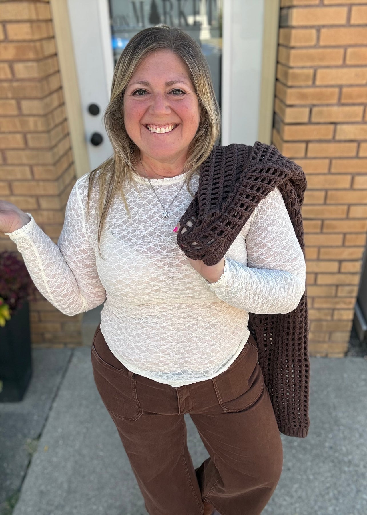 Stephanie's Fit: Stephanie is 5'3. She wears a L/XL in tops, size 11/13 in Judy Blue's. She is wearing a Large.