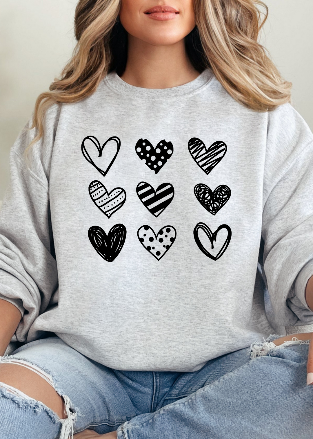 Row of Hearts (Black) Valentine Pullover